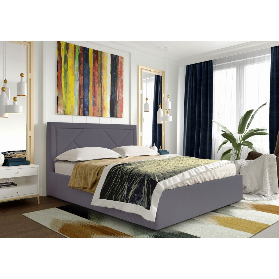 Кровать можно комплектовать ортопедическим основанием на пяти опорах или бельевым ящиком с подъемным ортопедическим основанием.