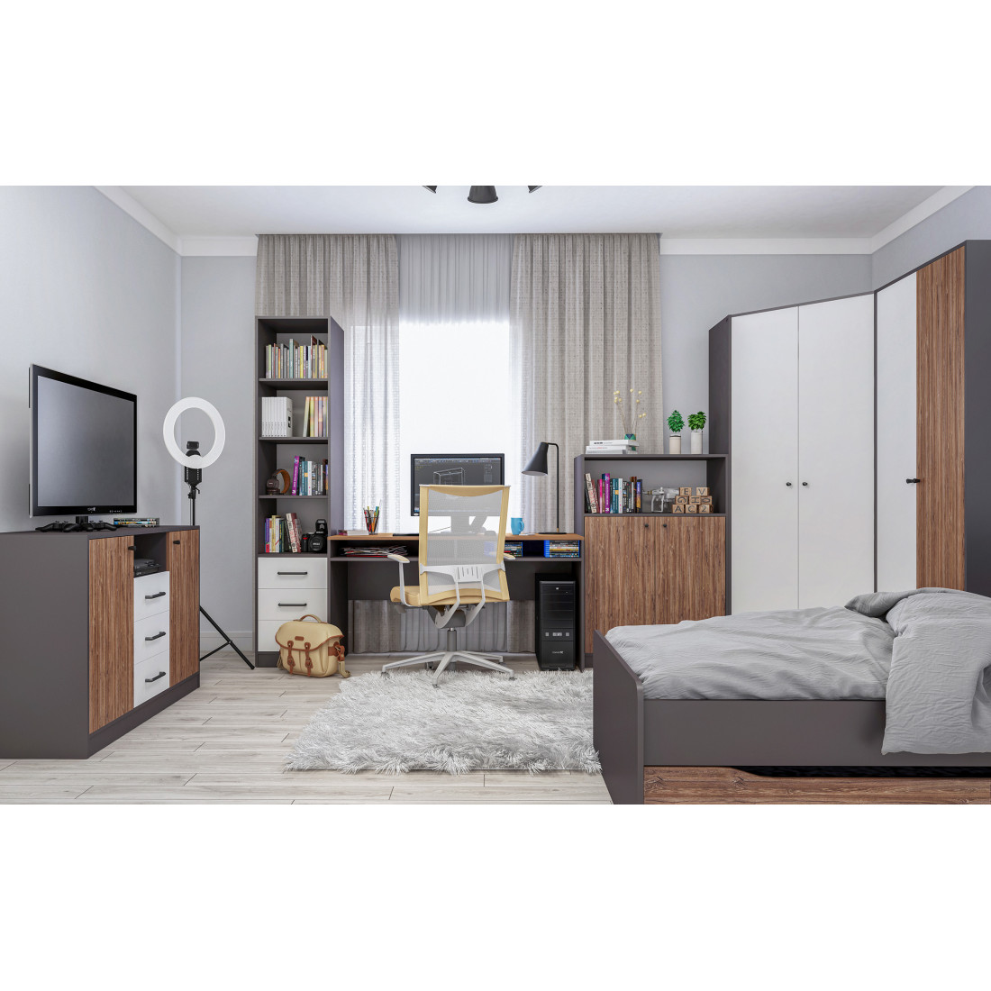 Коллекция Мальма для молодежной комнаты создана, исходя из последних веяний минимализма, которые так ценят люди, идущие в ногу со временем.