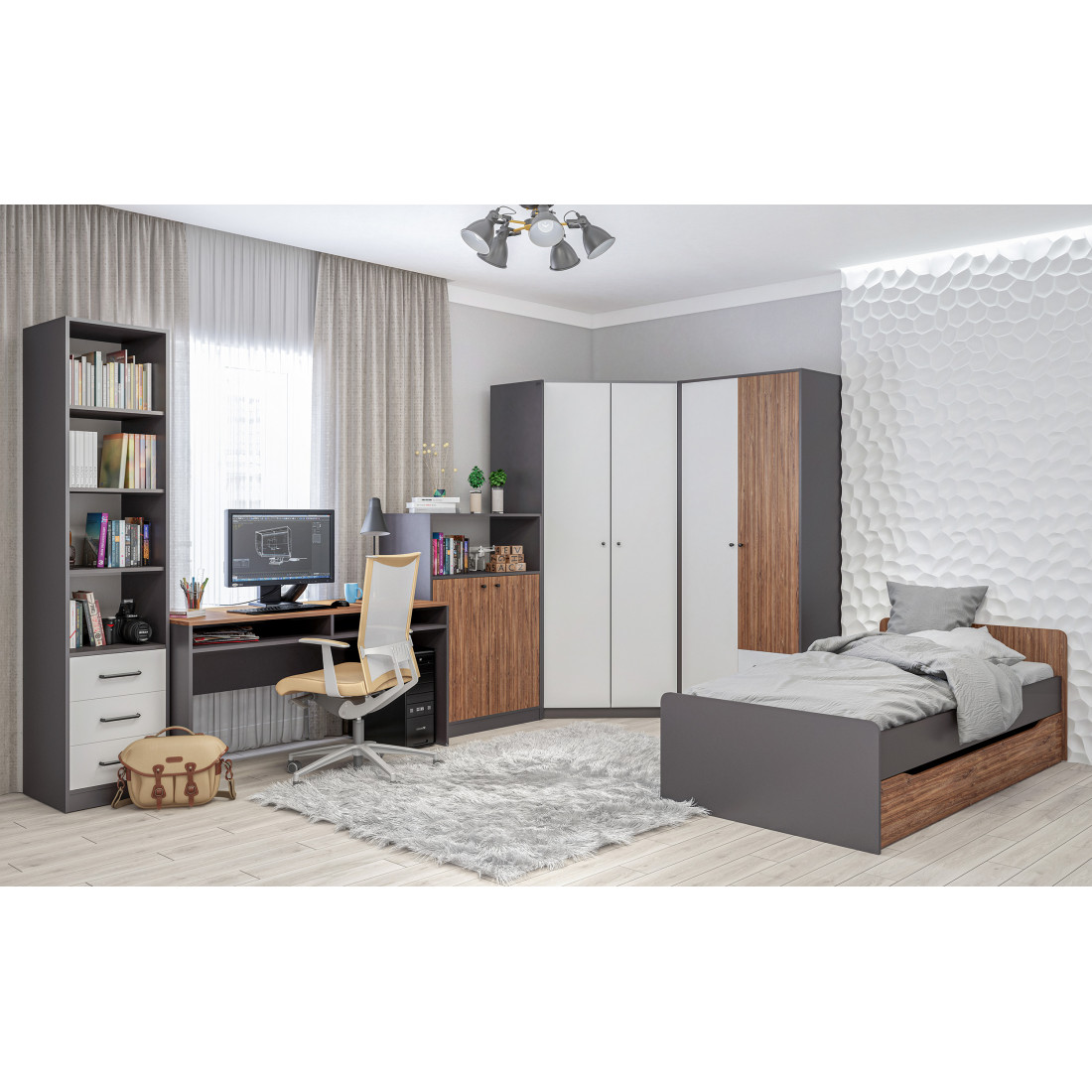 Коллекция Мальма для молодежной комнаты создана, исходя из последних веяний минимализма, которые так ценят люди, идущие в ногу со временем.